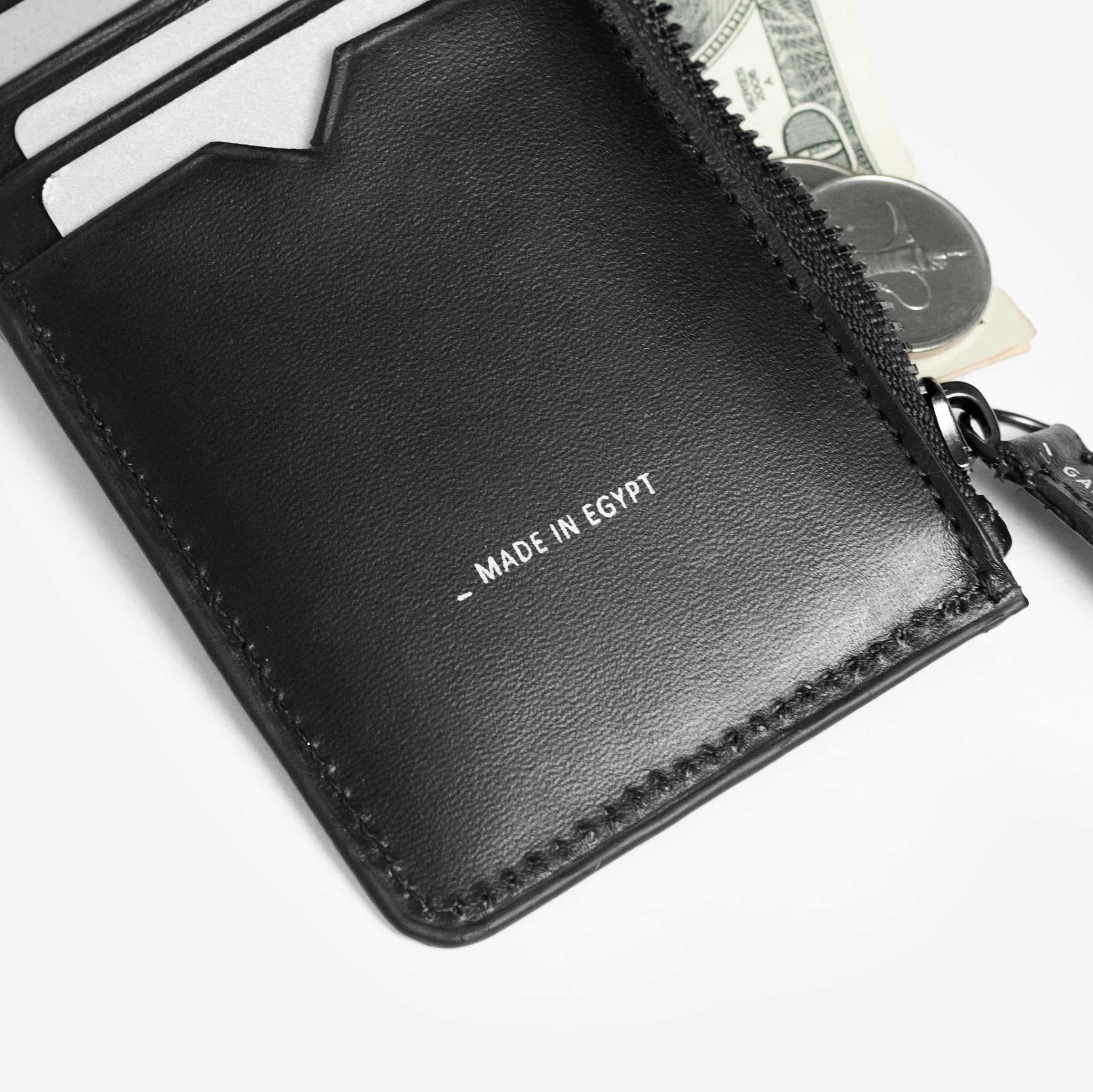 – Zipper pocket for coins, paper money and cards.